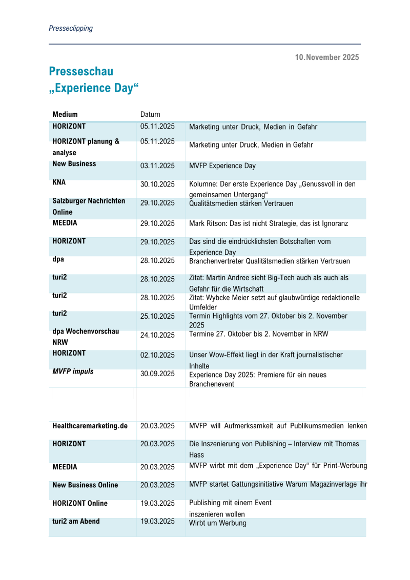Medienberichte 2025